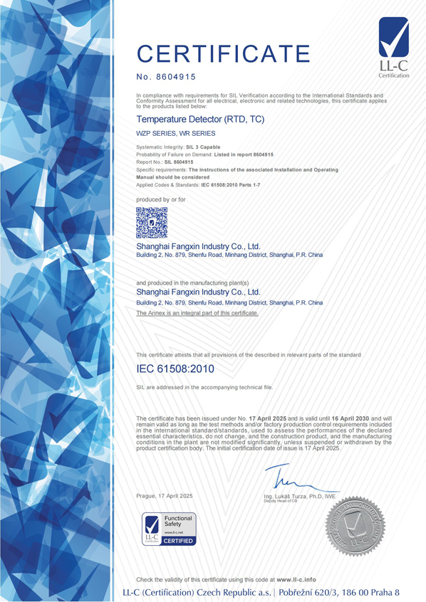 級精度產品制造計量許可證的極少數合法企業之一。并且率先采用了國際通用的分度號色標,從而使安裝在設備上的產品的分度號非常醒目,便于識別和更換,因此多年來受到熱工維檢人員的贊譽。